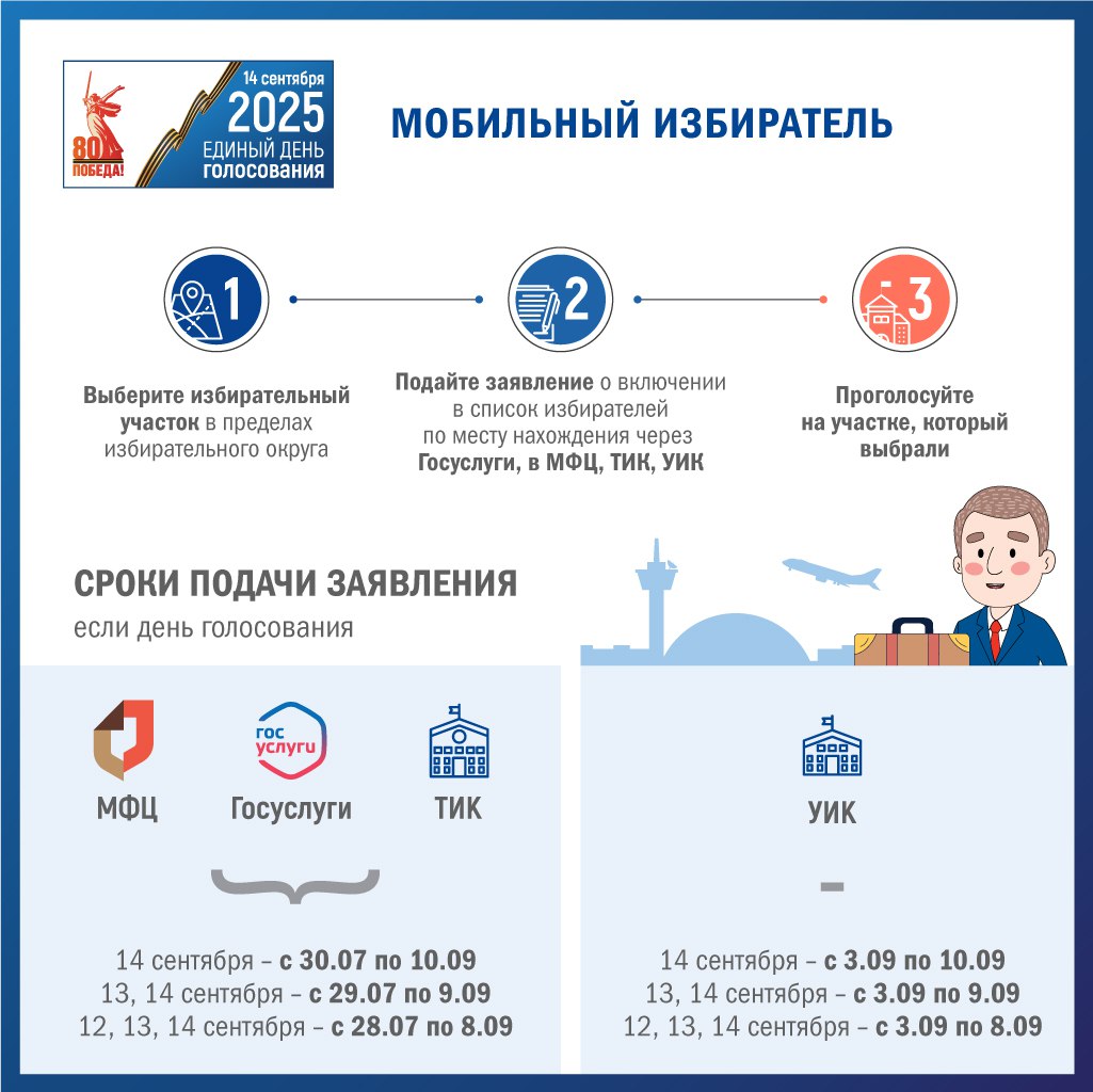 30 июля 2025 года начинают работу пункты приема заявлений о голосовании по месту нахождения (далее - ППЗ) в территориальных избирательных комиссиях, многофункциональных центрах "Мои документы" и на портале единых государственных услуг. В участковых избирательных комиссиях ППЗ заработают с 3 сентября.